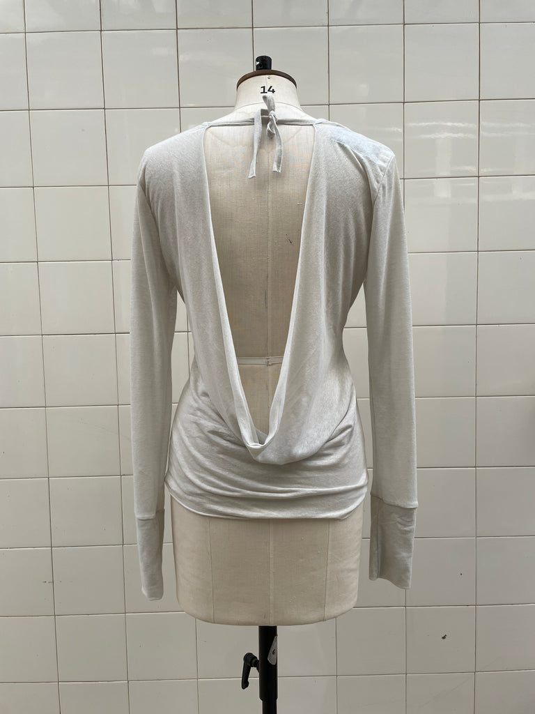 Cotton linen blend jersey backless top made from dead-stock materials sourced in Paris.