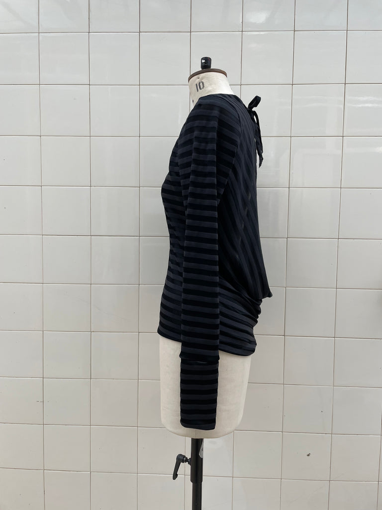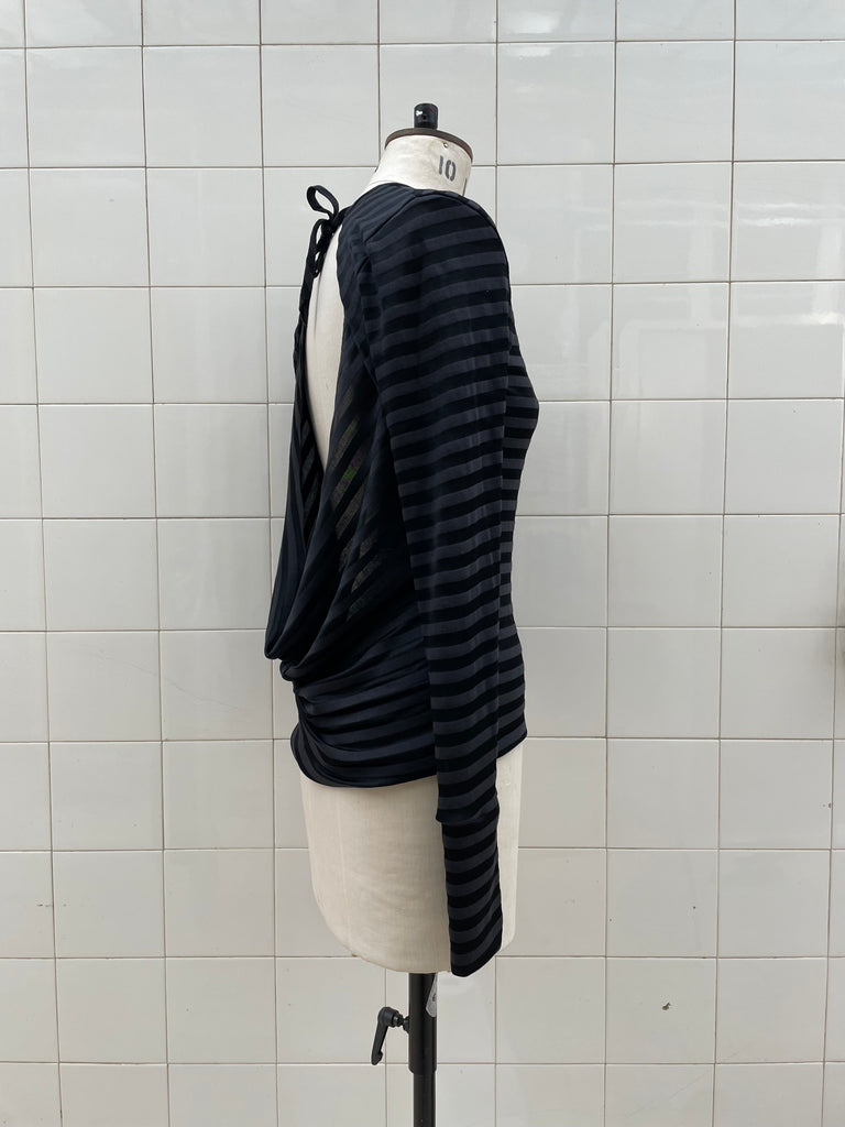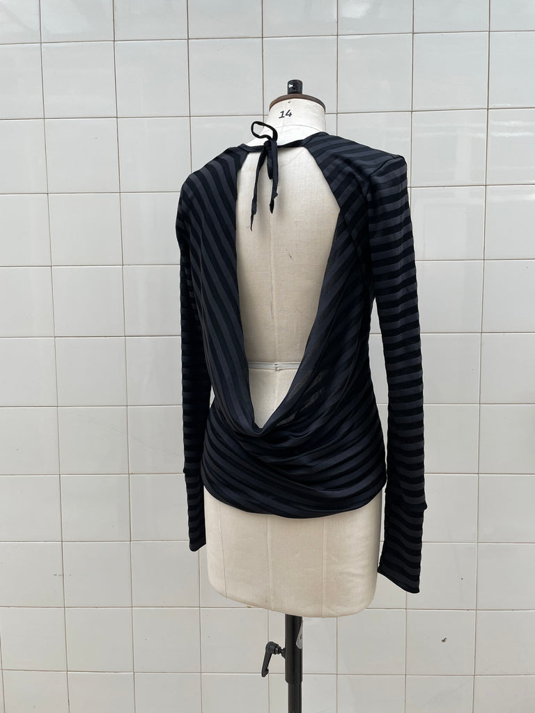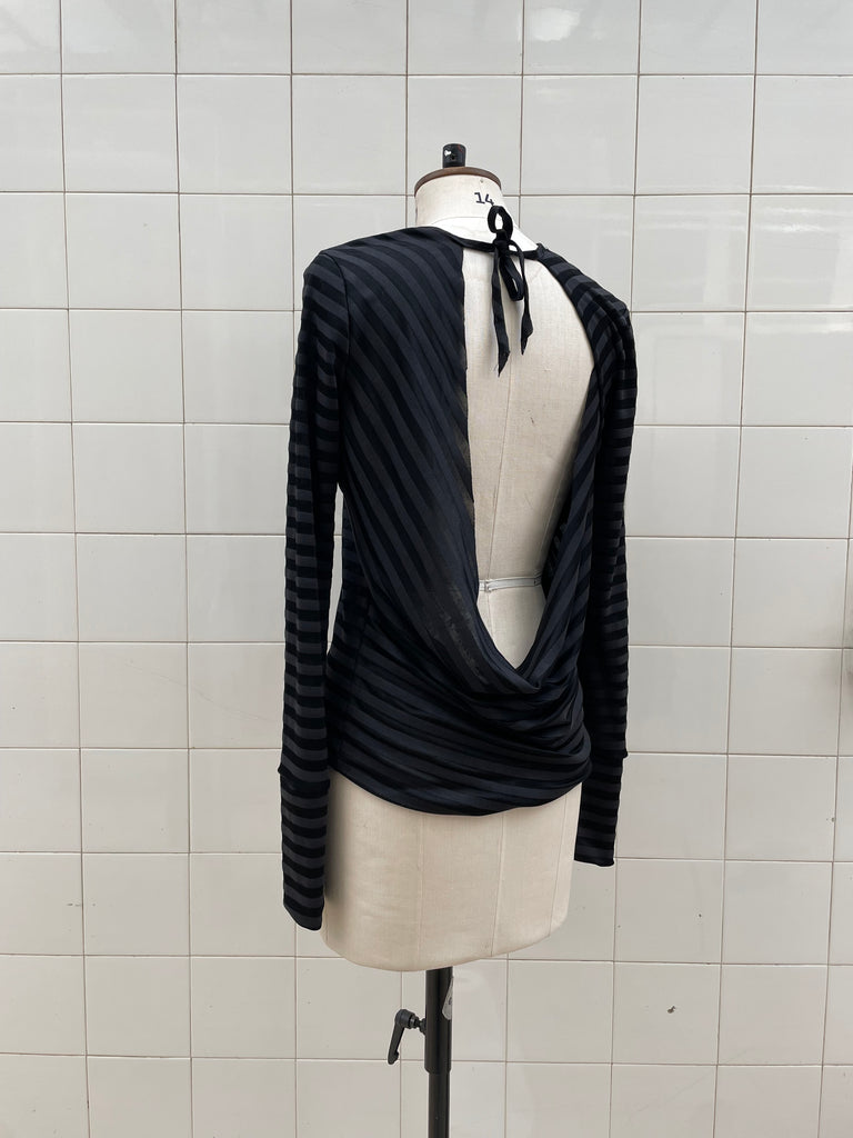 Silk blend striped jersey backless top made from dead-stock materials sourced in Paris.