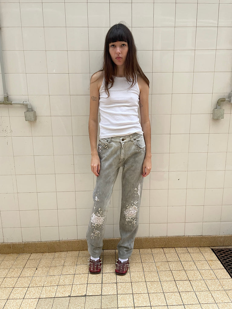 All jeans have a lining on the studded areas to ensure extra comfort. 100% cotton, Made in Paris.