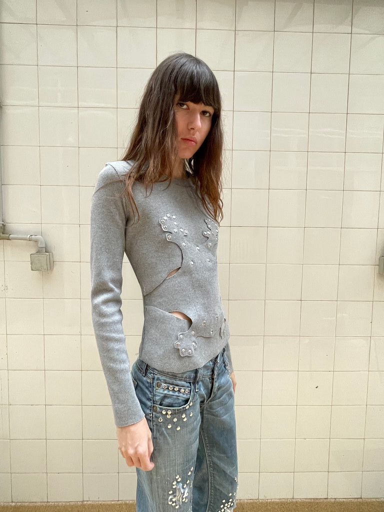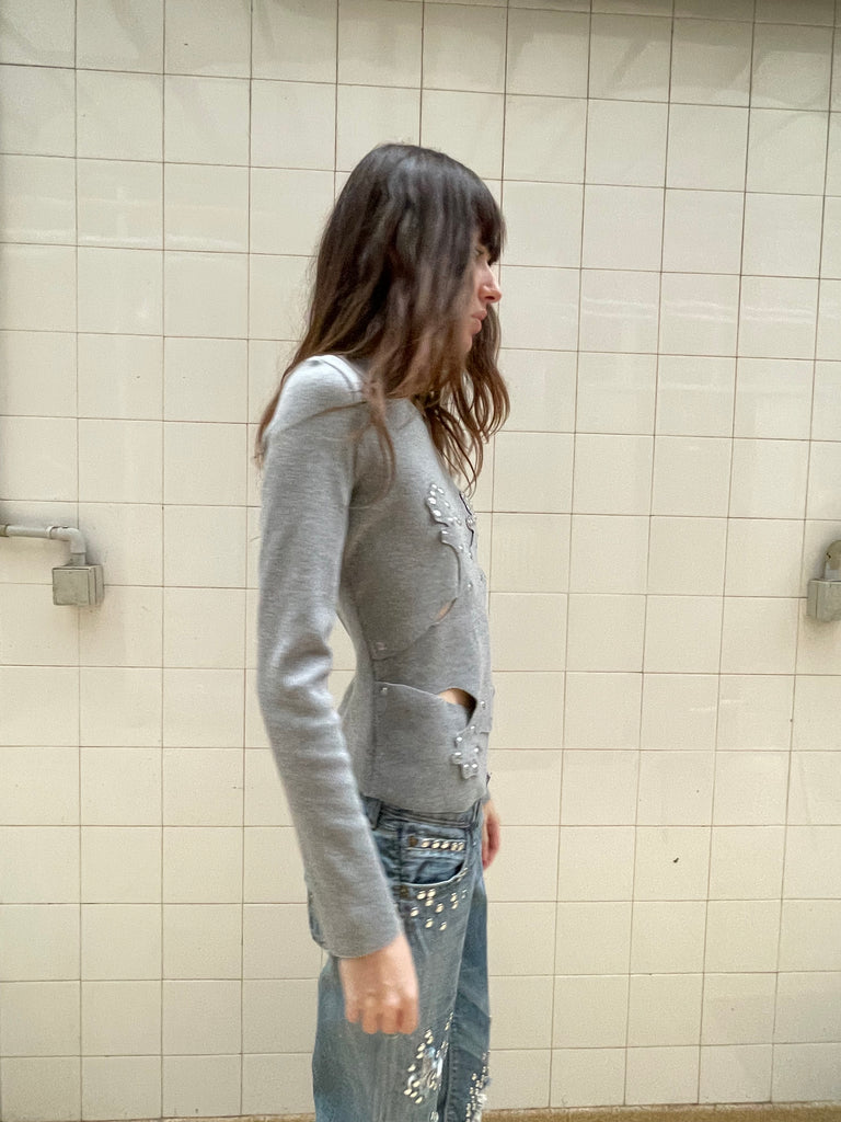 Long sleeve orchid top made In house from dead stock fabric