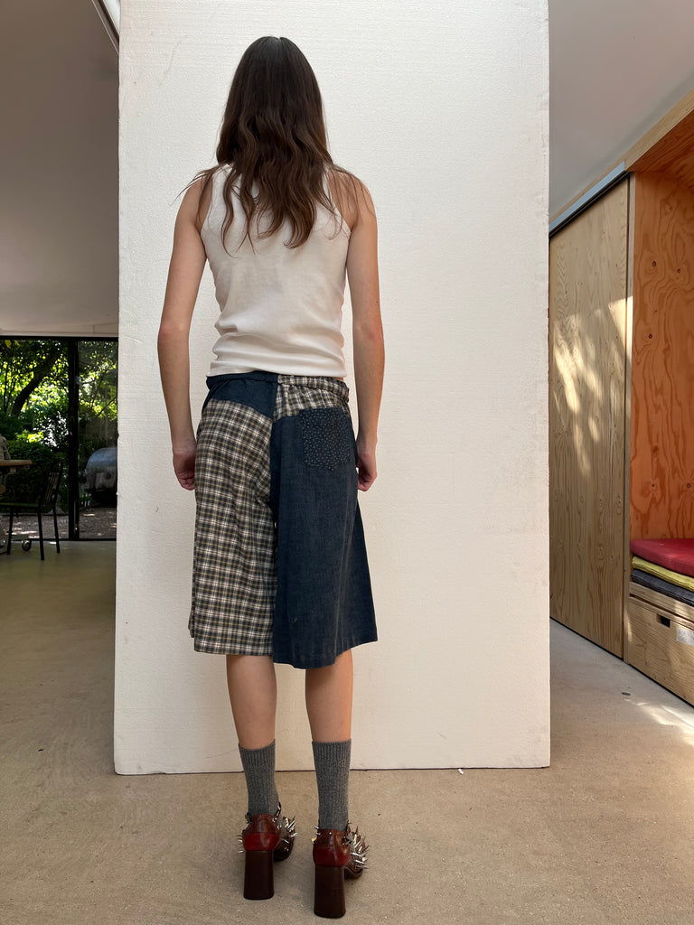 Shirt shorts, made from 100% cotton up-cycled vintage shirts. Sourced and crafted in Paris.