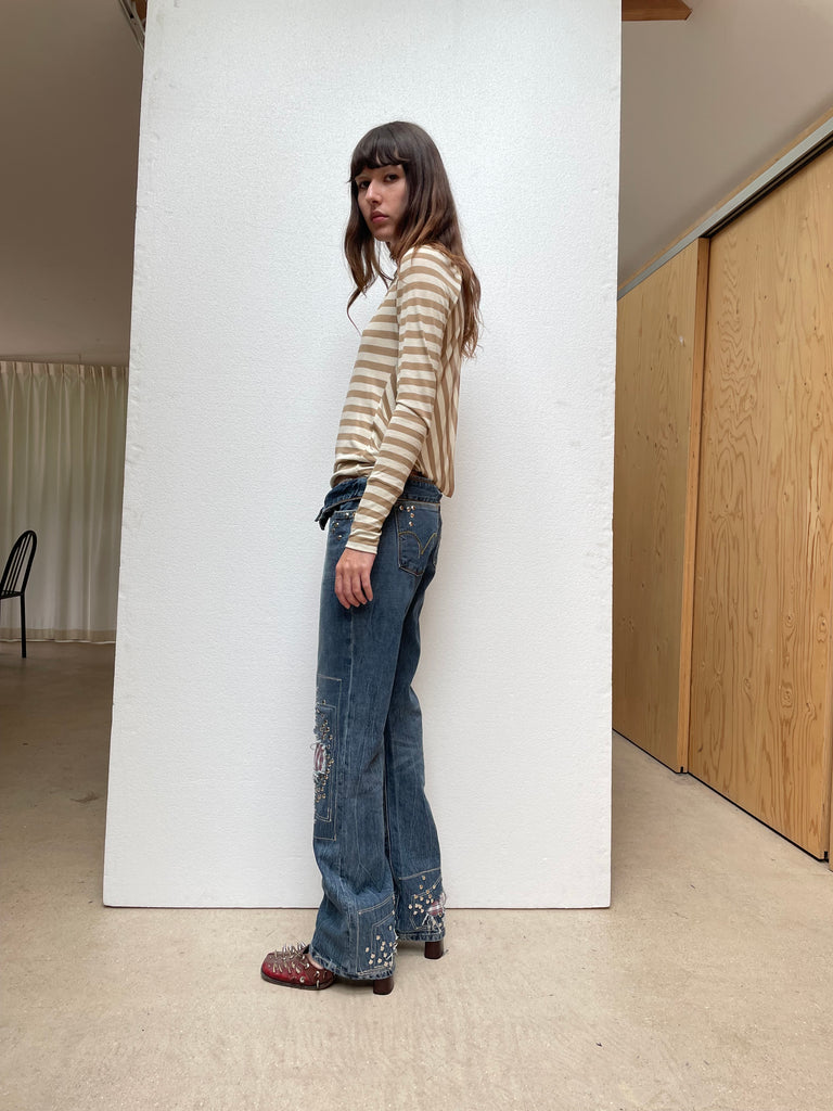 All jeans have a lining on the studded areas to ensure extra comfort. 100% cotton, Made in Paris.