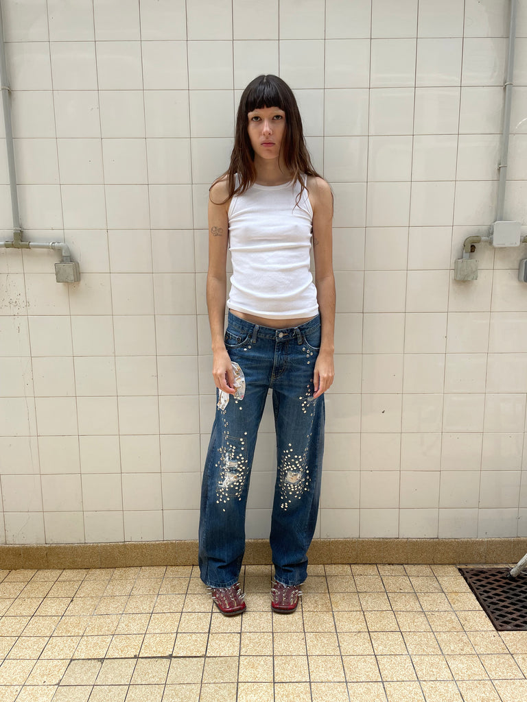 All jeans have a lining on the studded areas to ensure extra comfort. 100% cotton, Made in Paris.